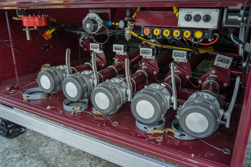 - Донный клапан ДУ 100 (по одному на каждый отсек цистерны) с пневматическим управлением и аварийным клапаном;