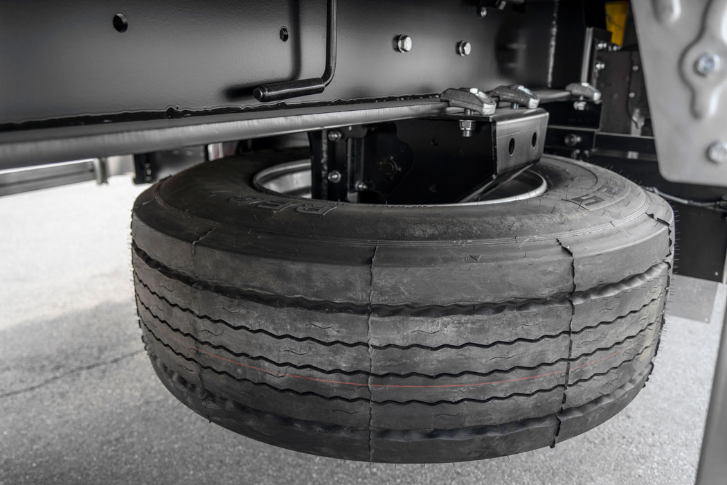 - Ошиновка односкатная, количество колес 8+1 запасное;
