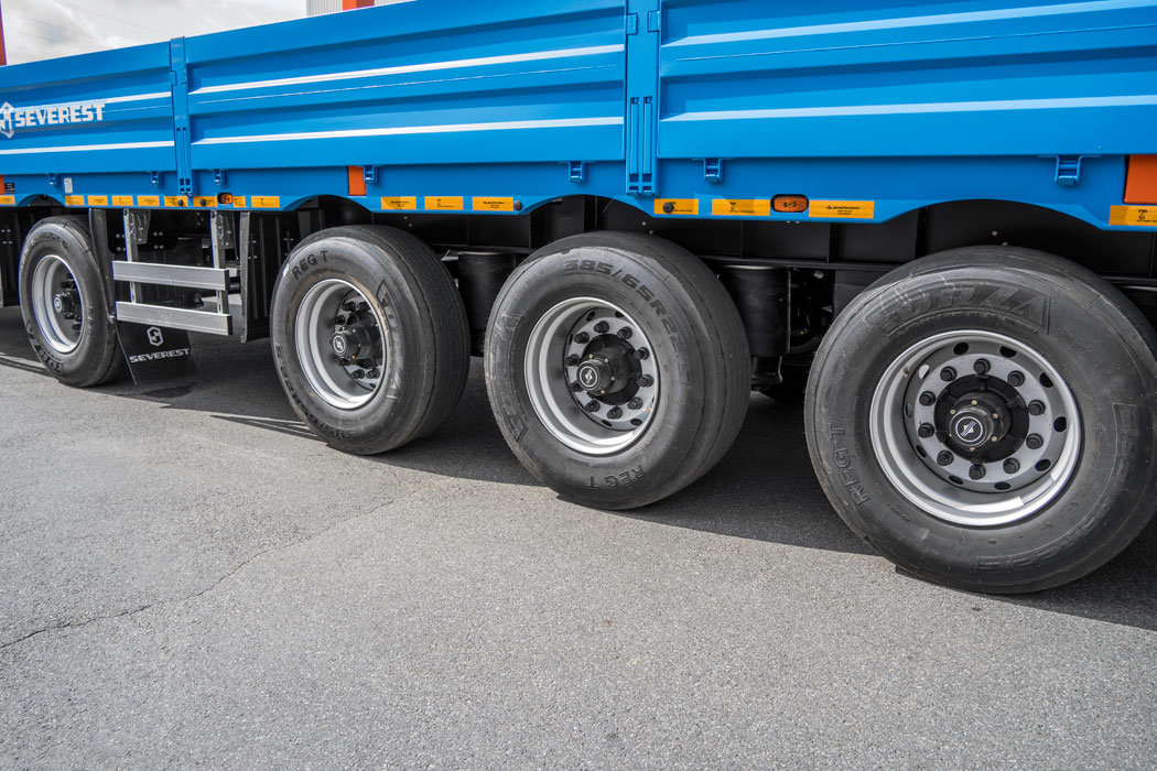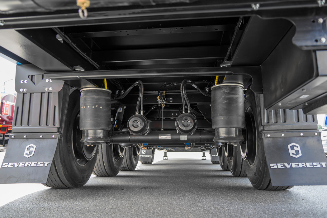 - Четырехосная пневматическая подвеска с двумя передними подъемными осями;