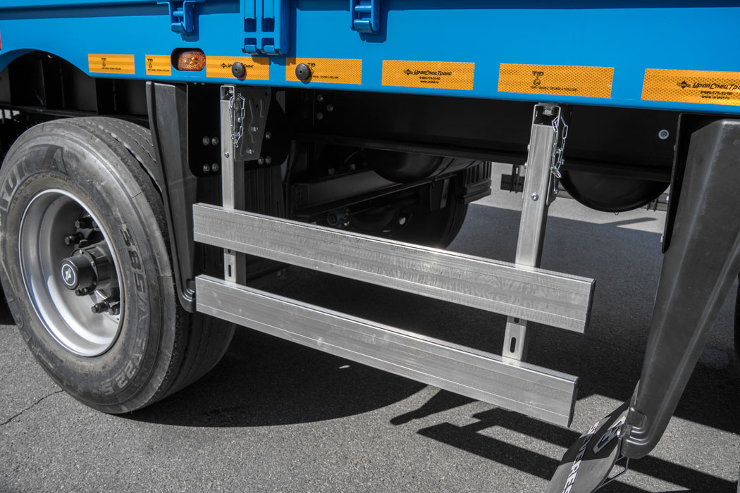 - Откидная ступень на заднем борту и поручень на стойке для удобства подъема на грузовую платформу.